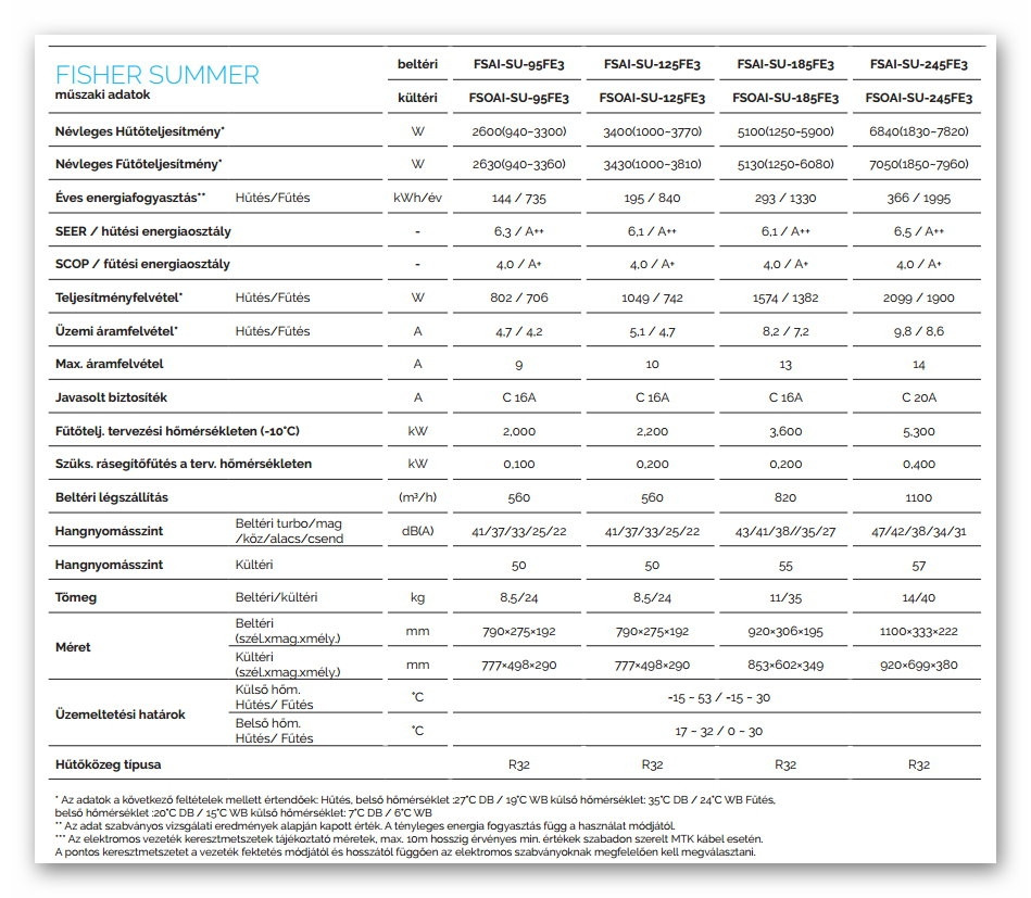 A Fisher FSAI-SU-95FE3 / FSOAI-SU-95FE3 Summer Inverteres Split klíma fontos tulajdonságai:
