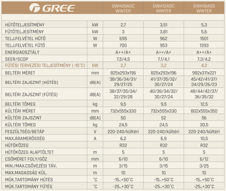 A Gree GWH09AGC-K6DNA2W Winter Inverteres Split klíma fontos tulajdonságai: