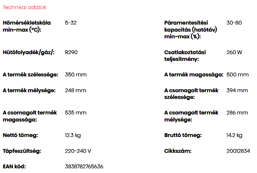 A Hisense D20HW Páramentesítő (20L/nap) fontos tulajdonságai: