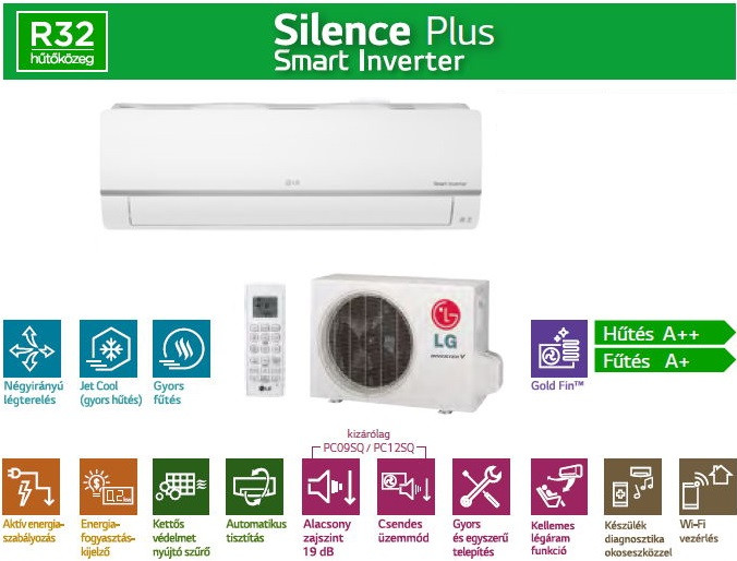 A LG PC18SK Silence Plus Wifi Smart Inverter Split klíma fontos tulajdonságai: