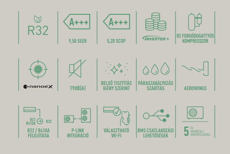 A Panasonic klímaberendezésekre 3+2 év jótállás vonatkozik a jótállási feltételek teljesülése esetén. (3 év teljes körű + 2 év a kompresszorra)