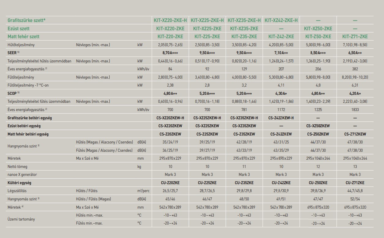 A Panasonic KIT-XZ35-ZKE-H Etherea Grafitszürke Inverteres Split klíma fontos tulajdonságai: