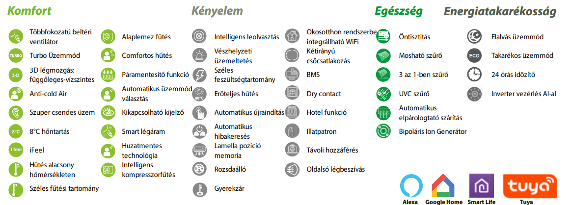 A Polar SIEH0025SDE/SO1H0025SDE Everest Inverteres Split klíma fontos tulajdonságai: