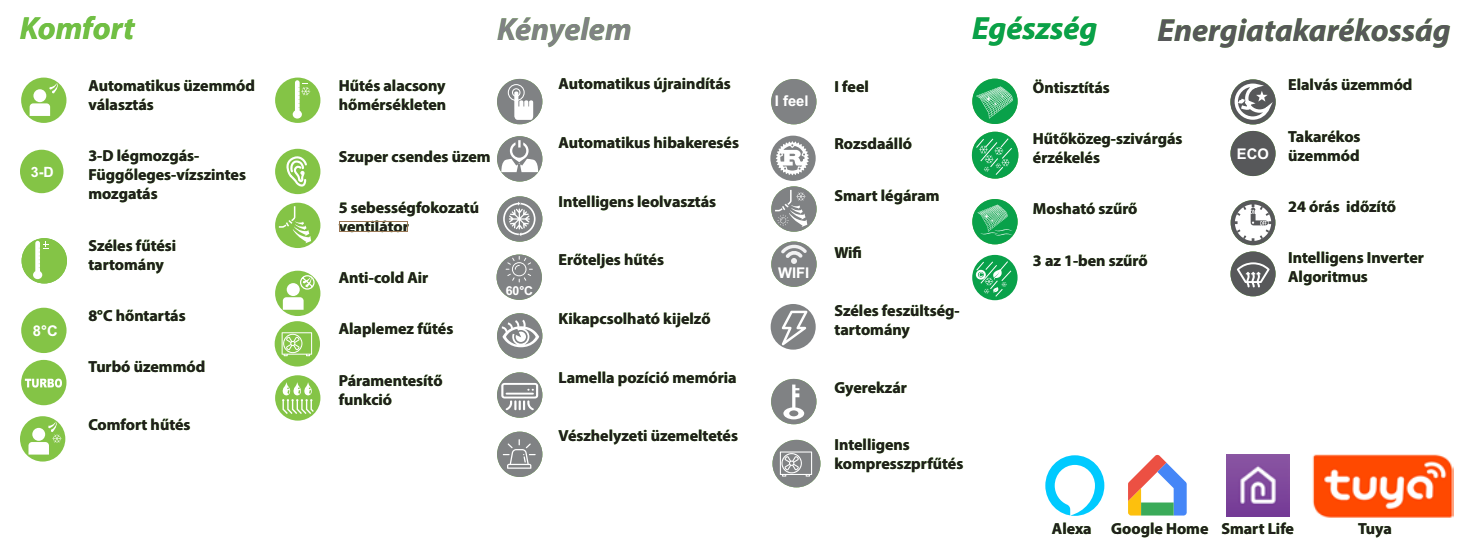 A Polar SIEH0025SDOB/SO1H0025SDO Optimum Inverteres Split klíma fontos tulajdonságai: